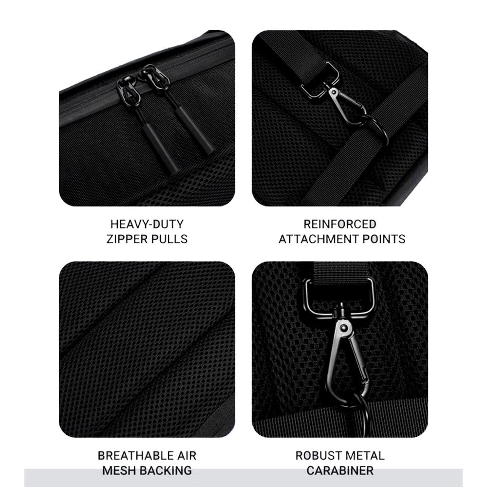 HEAVY-DUTY METAL HARDWARE – Designed for versatility. Equipped with a Robust Metal Carabiner and reinforced attachment points, the strap can be clipped to either side, allowing you to wear it over your left or right shoulder. The Heavy-Duty Zipper Pulls ensure smooth, snag-free access every time.