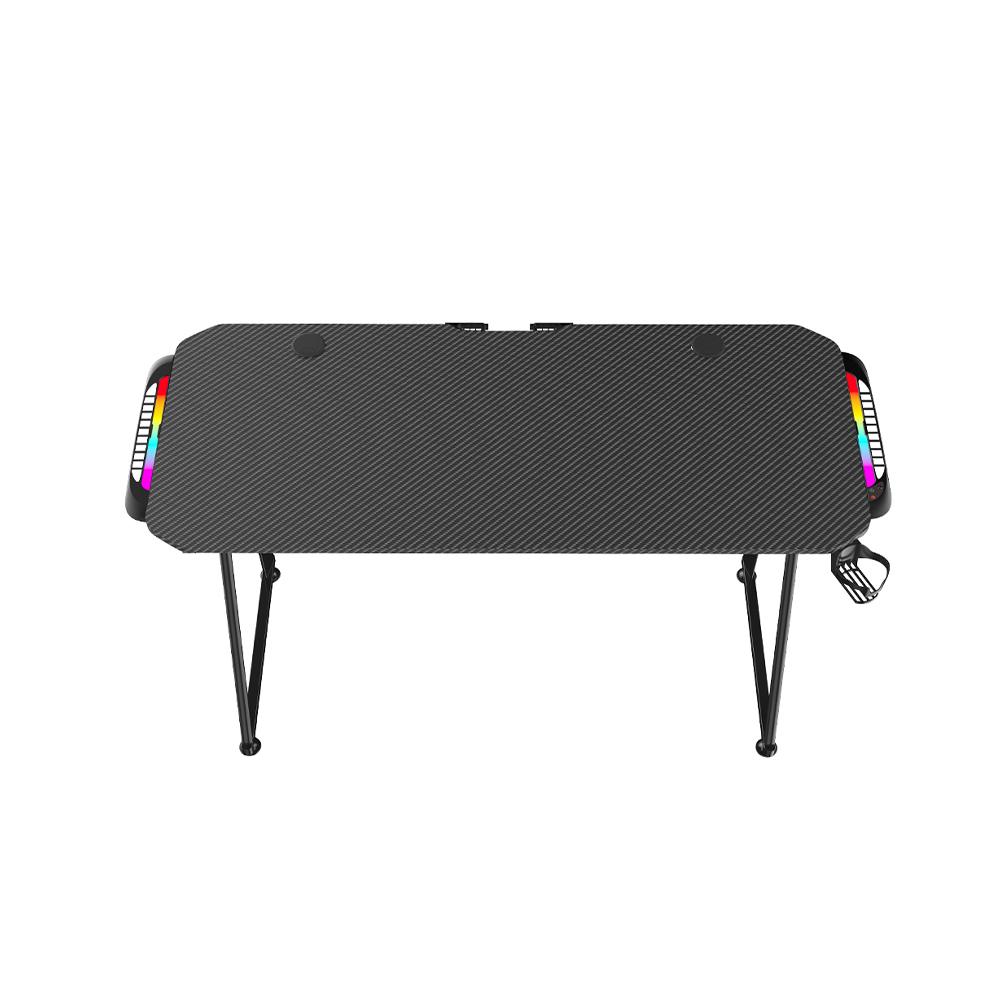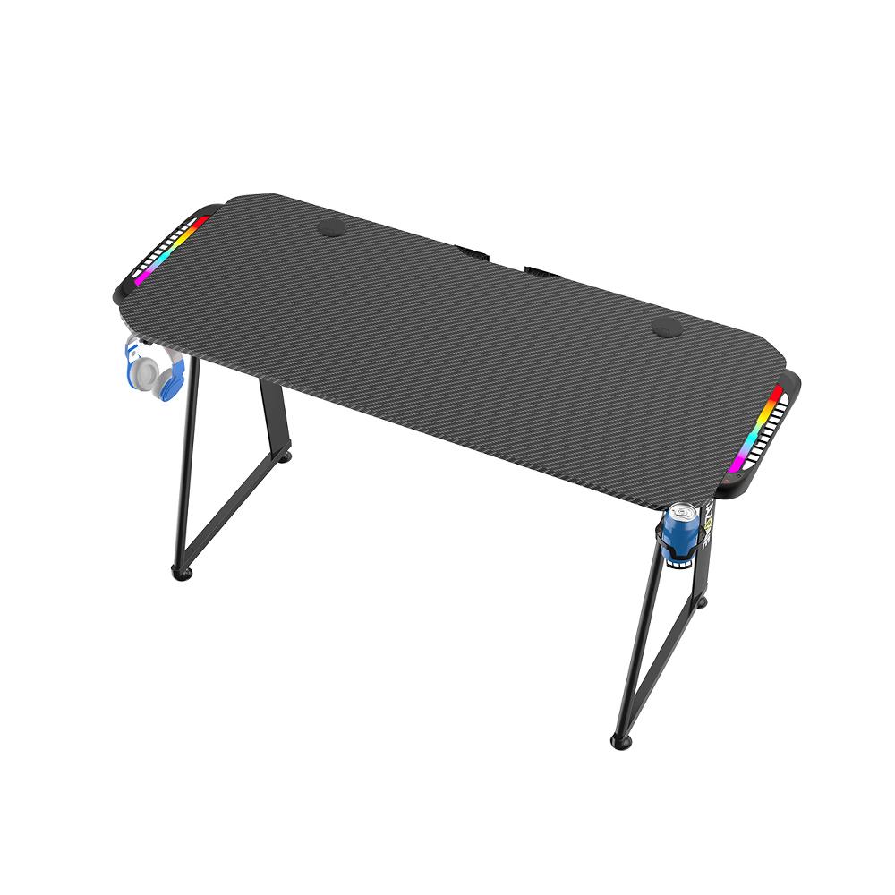 797 * 685 * 130mm, Professional RGB Gaming Table, Workstation Home Office Computer Desk with Large Carbon Fiber Surface, Cup Holder, Headphone Hook and Cable Clamp.Carbon Fiber Surface, Cup Holder, Headphone Hook and Cable Clamp | Black RGB