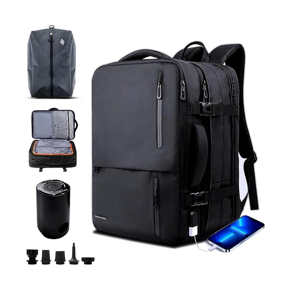 Space-Saving Vacuum Compression System: Our innovative large-capacity vacuum backpack features an integrated pump system with Strong Suction and specialized compression bags. The included electric pump enables rapid compression.