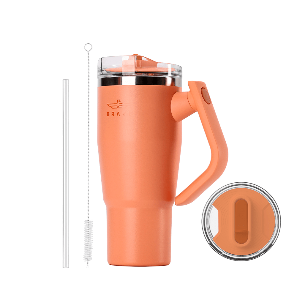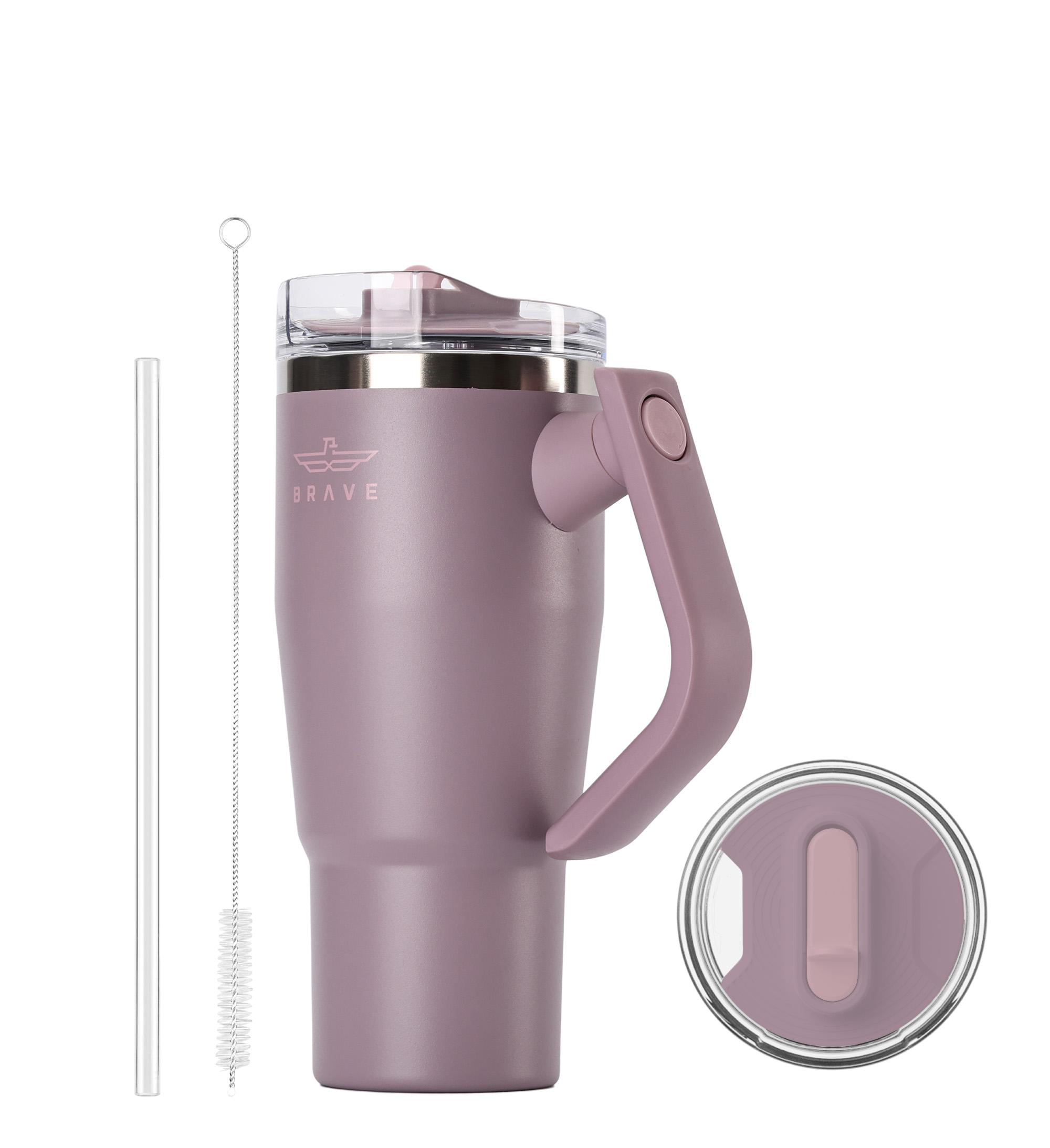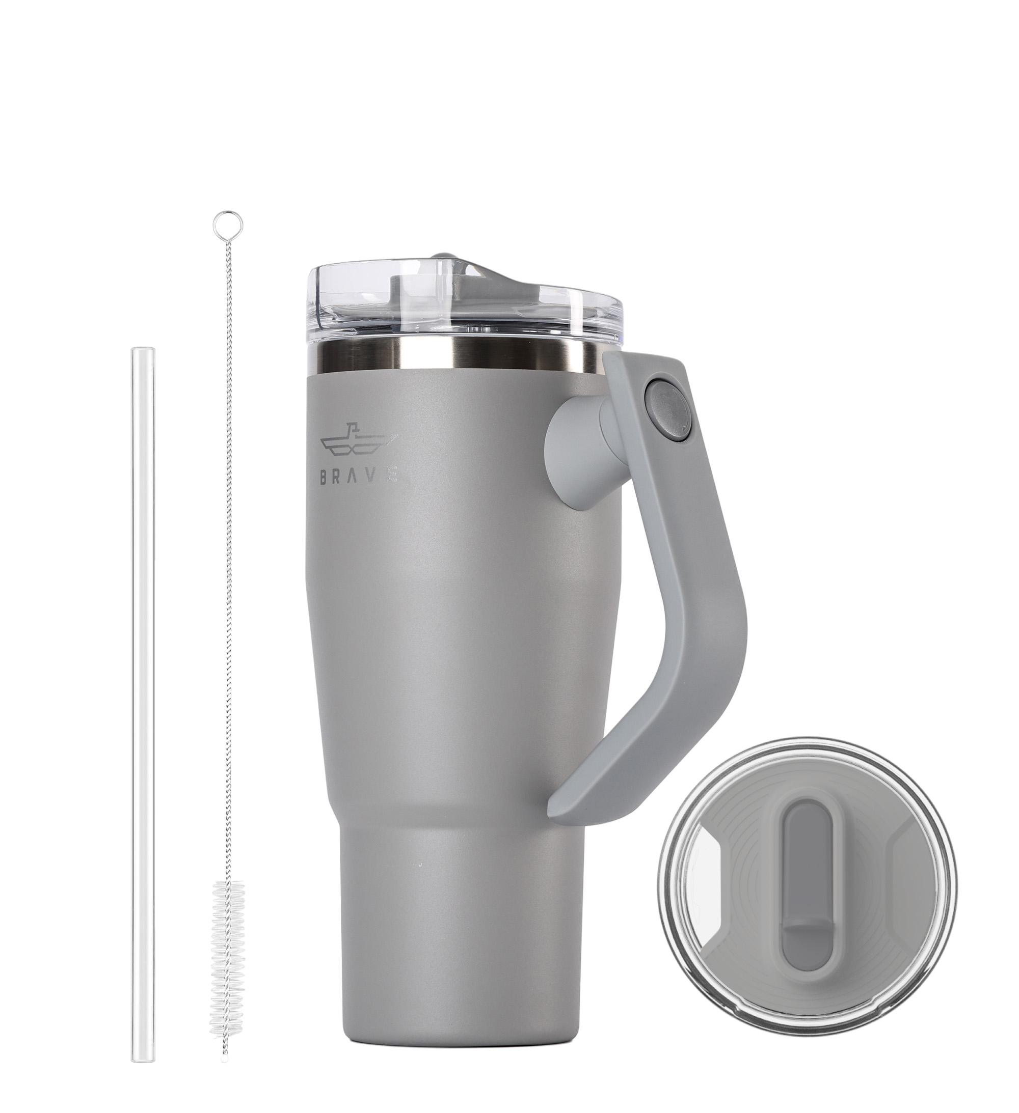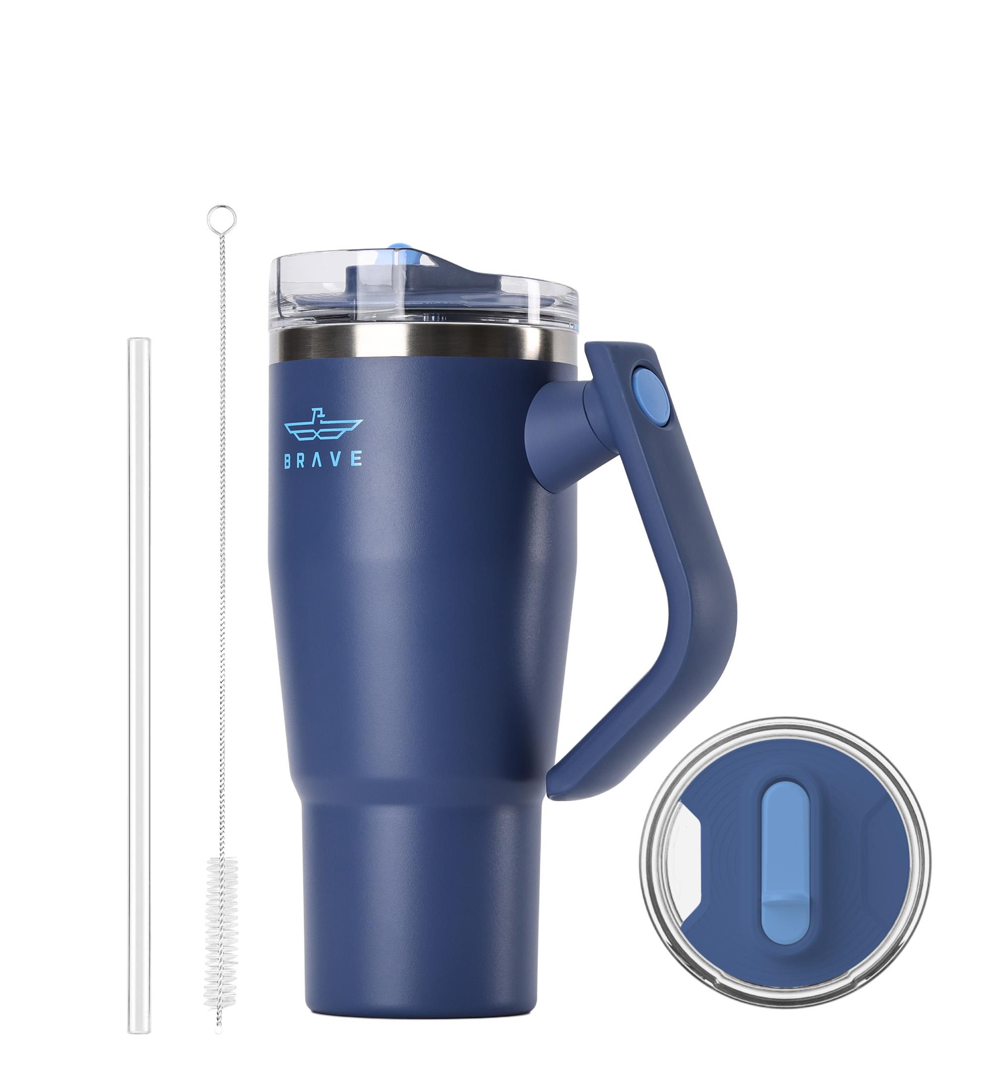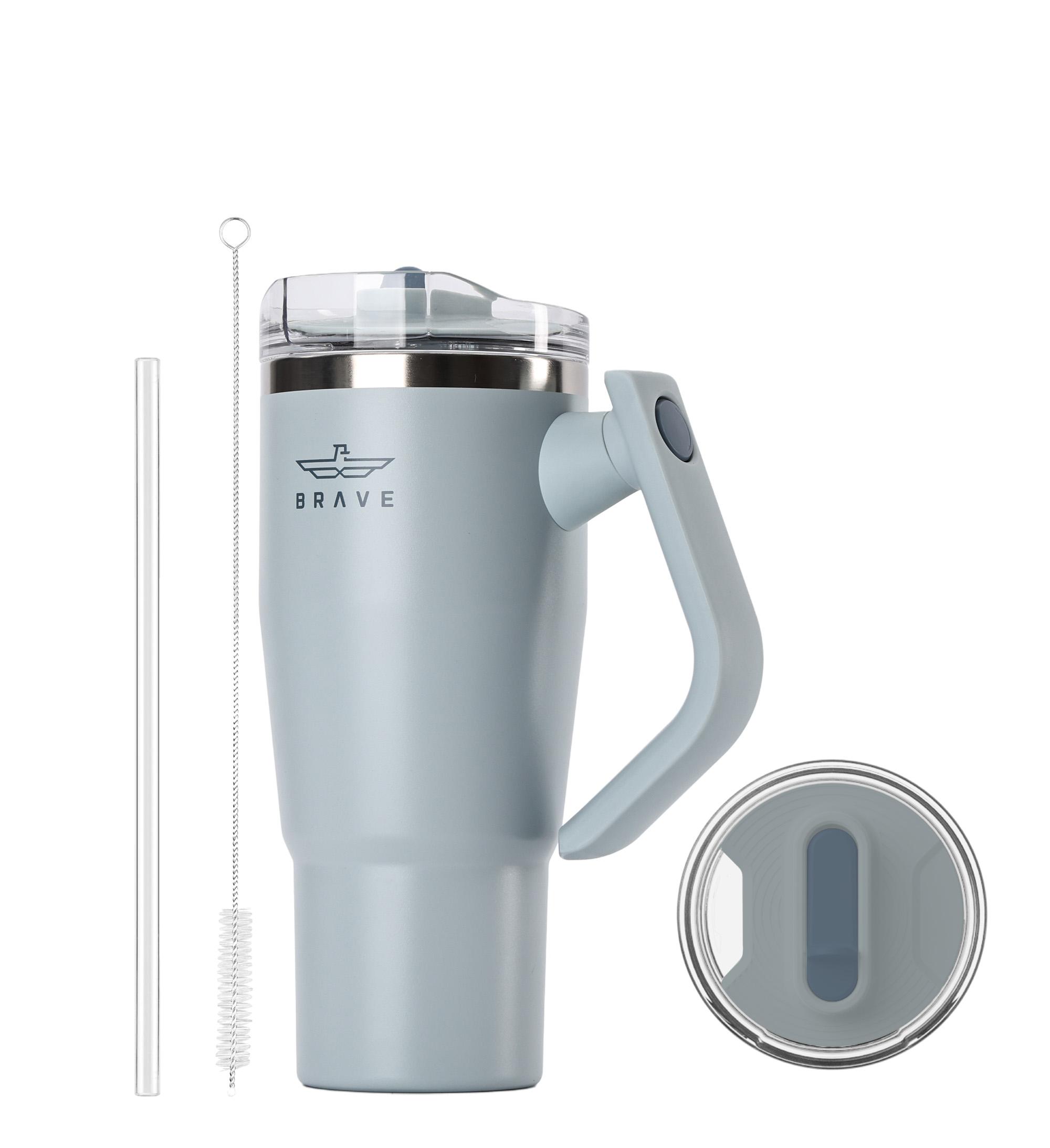 CUP HOLDER COMPATIBLE & 180° ROTATING HANDLE: The Brave tumbler with handle is designed for easy on-the-go use No more struggling to fit a cup in your car! Brave coffee mug travel slim base design is cup holder friendly, making it perfect for road trips, commutes, and office use. The comfortable, swiveling handles allow you to carry it with ease, whether you’re headed to the gym, the office, or on an outdoor adventure.